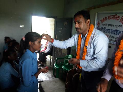 श्री जनता माध्यमिक विधालय रामग्राम १५ सुक्राैली मा अायाेजित छात्रबृत्ति वितरण कार्यक्रम २०७५ मा प्रमुख अतिथि रामग्राम नगरपालिकाका नगर प्रमुख श्री नरेन्द्र कुमार गुप्ताज्यु द्धारा छात्रबृत्ति प्रदान गर्नु हुदै