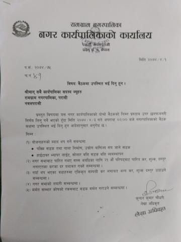 » बैठकमा उपस्थित भई दिनु हुन, रामग्राम नगरपालिका कार्यपालिका सदस्य सबै