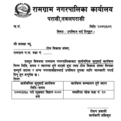 सार्वजनिक सुनुवाई कार्यक्रम वार्ड नं. १० मिति २०७२.०३.१८ गते शुक्रबार बिहान ०७:०० बजे