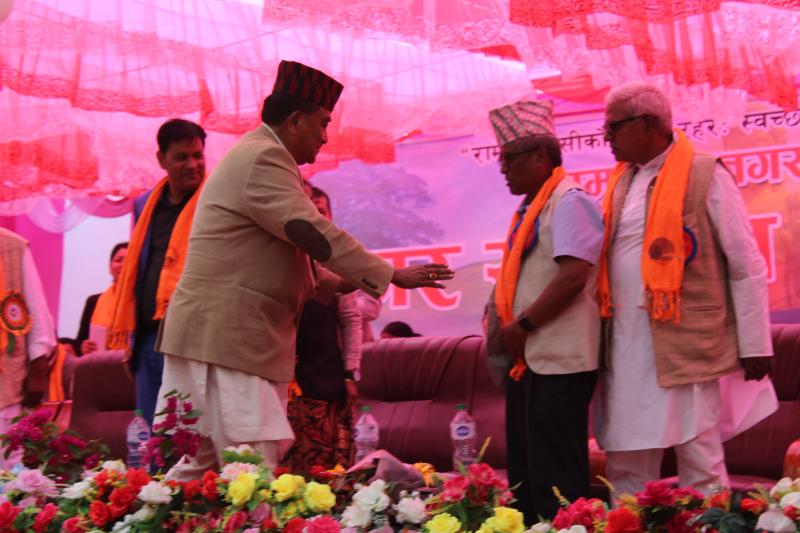 Home » मिति २०८२/१२/१४ गते शनिबारका दिन यस रामग्राम नगरपालिकाका नगर प्रमुख श्री धनपत यादवज्यूको अध्यक्षता र लुम्बिनी प्रदेशका बन तथा वाताबरण मन्त्री माननीय देवकरण कलवारज्यूको प्रमुख आतिथ्यतामा नगर स्थापना दिवस २०८२ ।