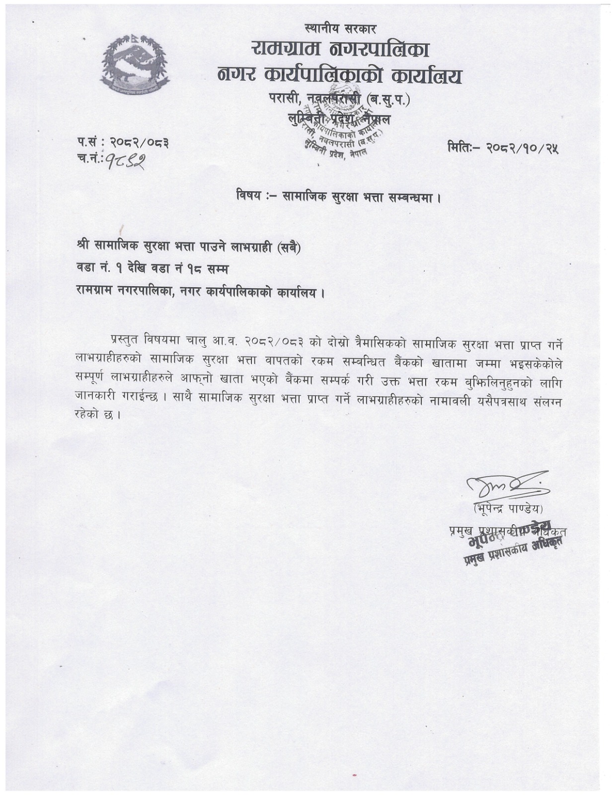सामाजिक सुरक्षा सम्बन्धमा ।